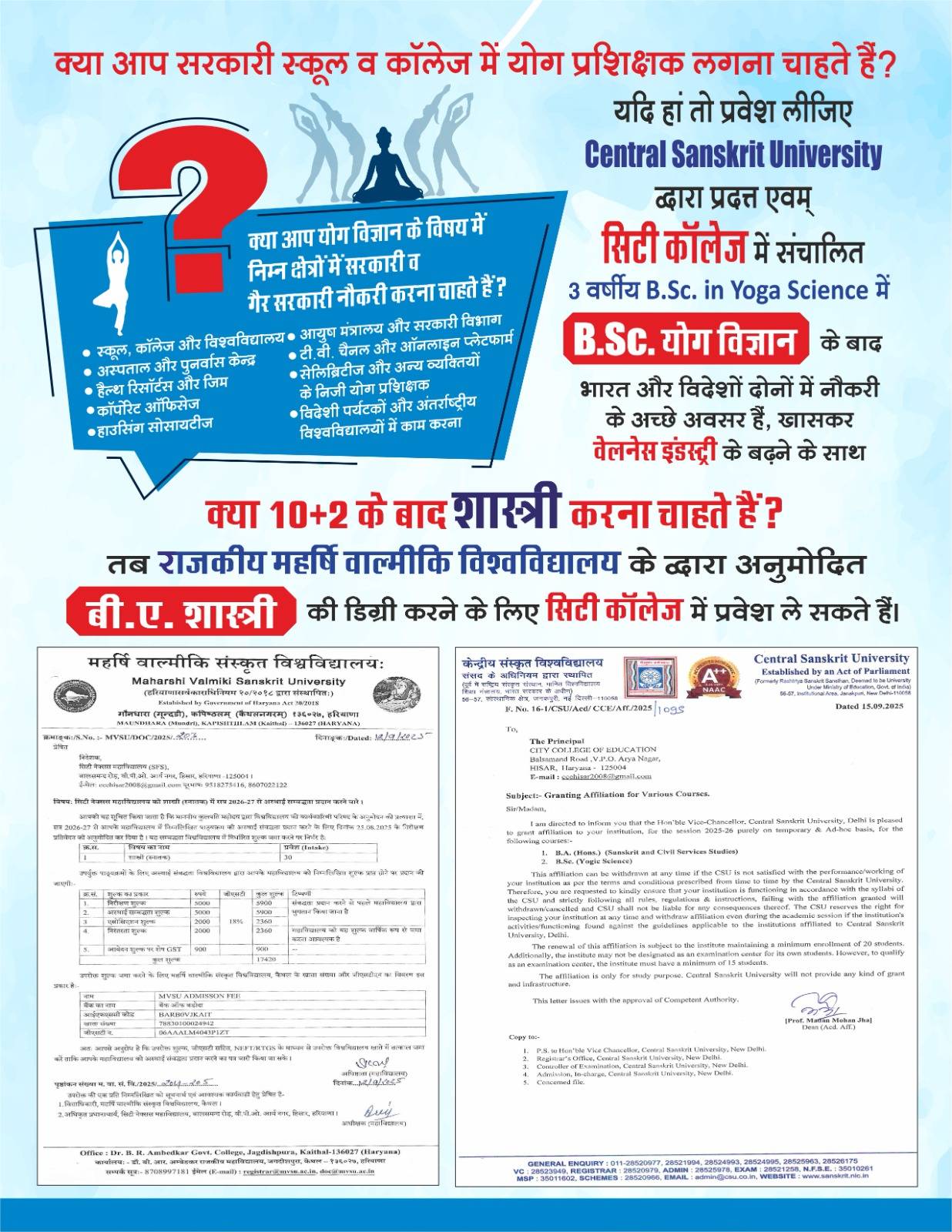 B.A. (SHASTRI) M.V.S.U, KAITHALB.A (Shastri) – 3 Year has been opened course for session 2026-27