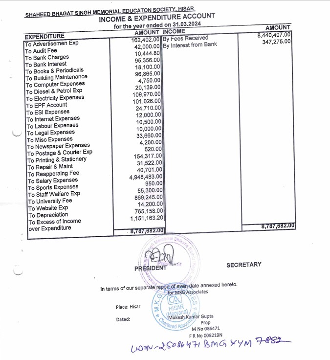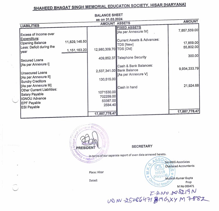 BALANCE SHEET & INCOME &EXPENDITURE ON 31.03.2025